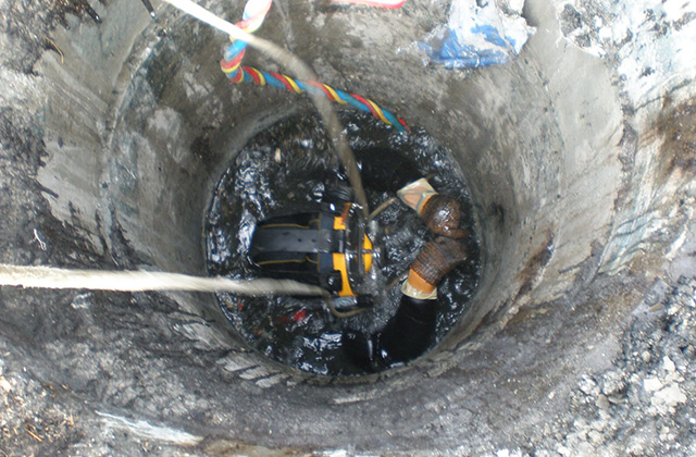 根據水位深淺,分為淺水封堵和深水封堵兩種。水泥與黏土的比例為I:4—1:5。操作方法是先將黃泥加水和勻,無硬塊粗粒,呈面團狀,再加水泥拌勻。也可適量加入水玻璃、快干劑之類的促凝劑。摻入后的混和物應隨拌隨用,以免結硬失效、浪費。